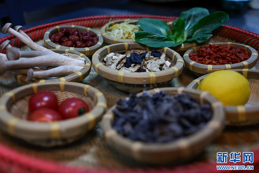 制作八珍药膳米线汤底的部分食材(2025年11月22日摄)。新华网发(徐华陵 摄)