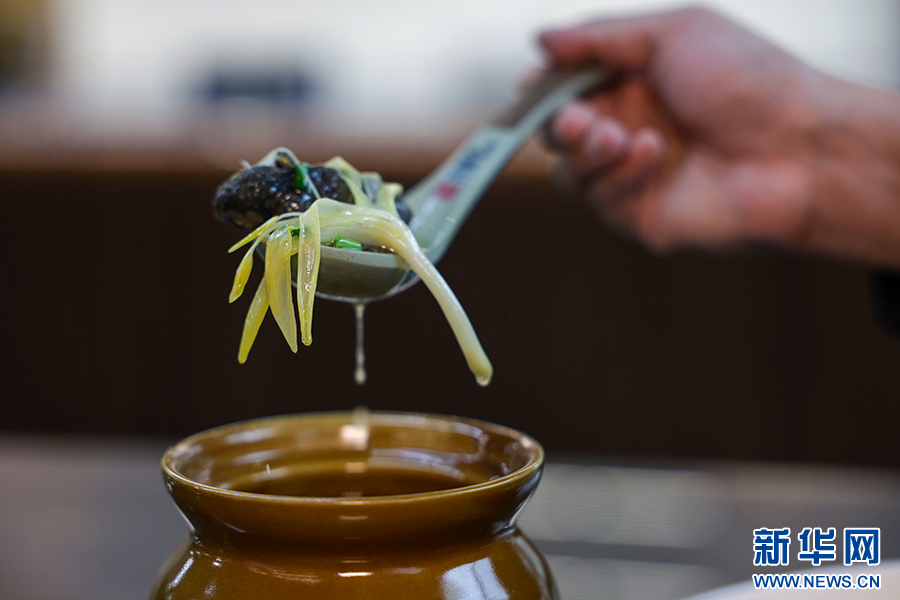 以党参、茯苓、当归等药材配伍熬煮出的八珍乌鸡炖盅汤(2025年11月22日摄)。新华网发(徐华陵 摄)