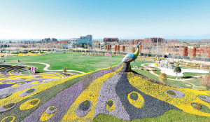 位于滇池东岸的巨型孔雀花坛即将完工,预计2月初与市民见面。孔雀由百万株鲜花堆砌而成,从天空俯瞰,一只巨大的孔雀在滇池湖畔开出一片最美的花。(记者 赵伟)