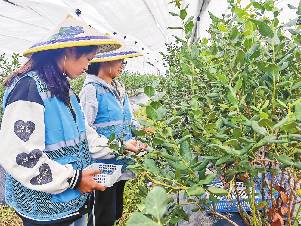 工作人员在高原特色现代农业产业示范园内采摘蓝莓。 本报通讯员 和倩 摄