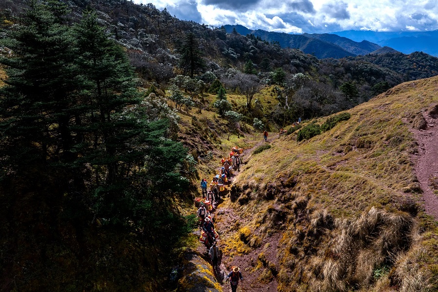 马帮行走在盐马古道上(2025年11月6日 摄)。