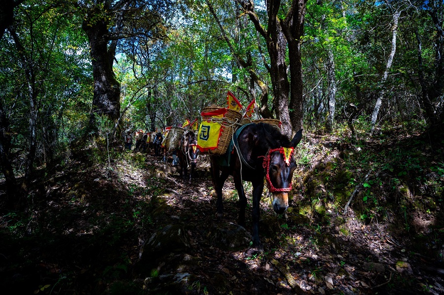马帮行走在盐马古道上(2025年11月7日 摄)。