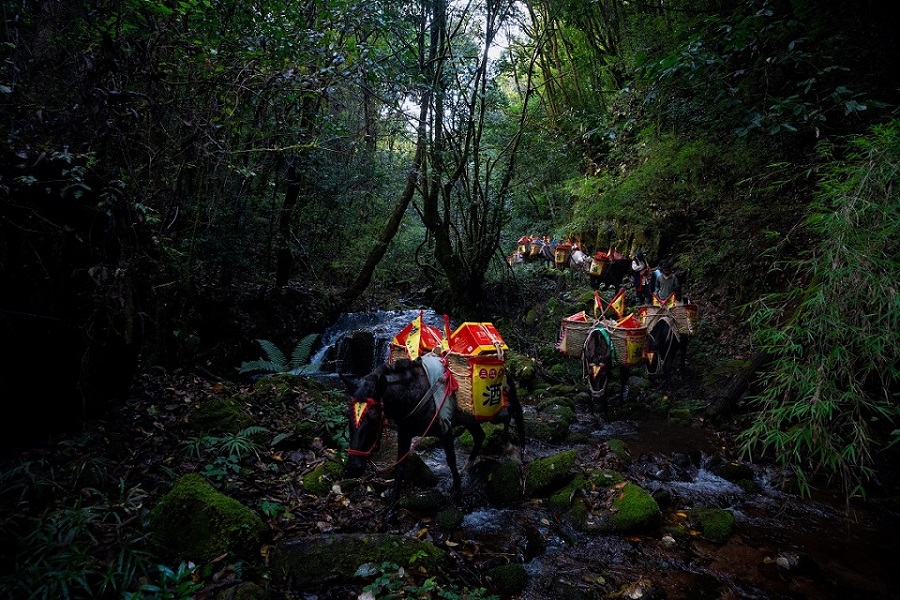 马帮行走在盐马古道上(2025年11月9日 摄)。