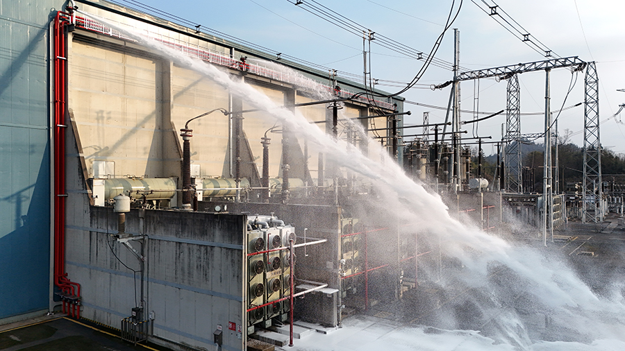 换流变压器是直流换流站里的“庞然大物”,内部装有近100吨冷却油,一旦发生火灾后果不堪设想,但常规水喷淋系统对套管插入直流阀厅的换流变灭火效果有限。如今,这一难题在中国南方电网有限责任公司超高压输电公司曲靖局(以下简称“南网超高压公司曲靖局”)±500千伏牛寨换流站有了“最优解”。