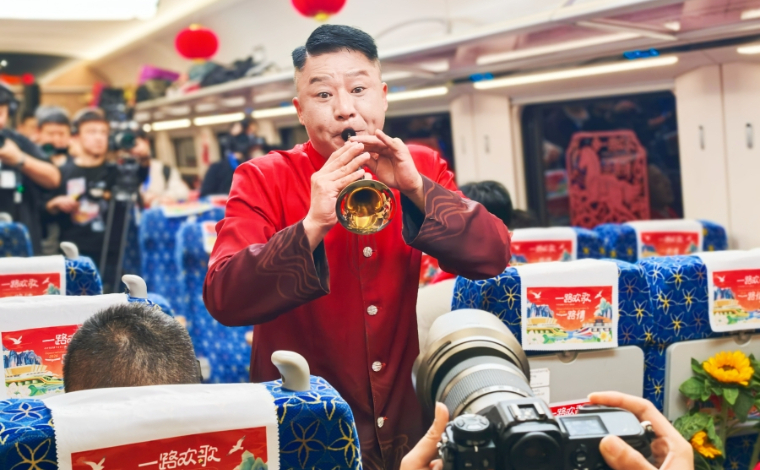 2月4日,“一路欢歌一路情”中老铁路春节文化主题活动在中老铁路旅客列车上举办。作为“一路向前”2026新春文化走进老挝、文莱系列活动的启幕篇章,本次活动将飞驰的D87次“澜沧号”与D88次“复兴号”列车打造为移动的舞台,两车分别从昆明南与万象北出发,来自中老两国的艺术团体与各界代表在此共迎新春、共叙友谊。