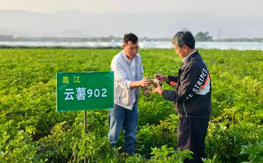在云南省农业科学院盈江农科服务团的指导下,2024年至2025年冬季弄璋镇南永村农户思永新种植的3.3亩早熟马铃薯新品种云薯509,实现提前收获。收了马铃薯再种一茬西瓜,西瓜收获后再种植水稻,一年三茬。云薯509在盈江县多年试种表明,具有早熟、高产、薯形整齐、皮色光滑和市场卖样好等特点。云薯509在盈江县的推广,市场定位是“过年洋芋”,不仅赢得市场先机,还可为盈江县薯后西瓜种植提前10天至20天播种。