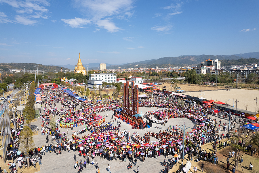 梁河县2026年葫芦丝文化旅游节开幕(2月19日摄)。