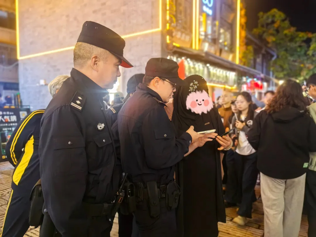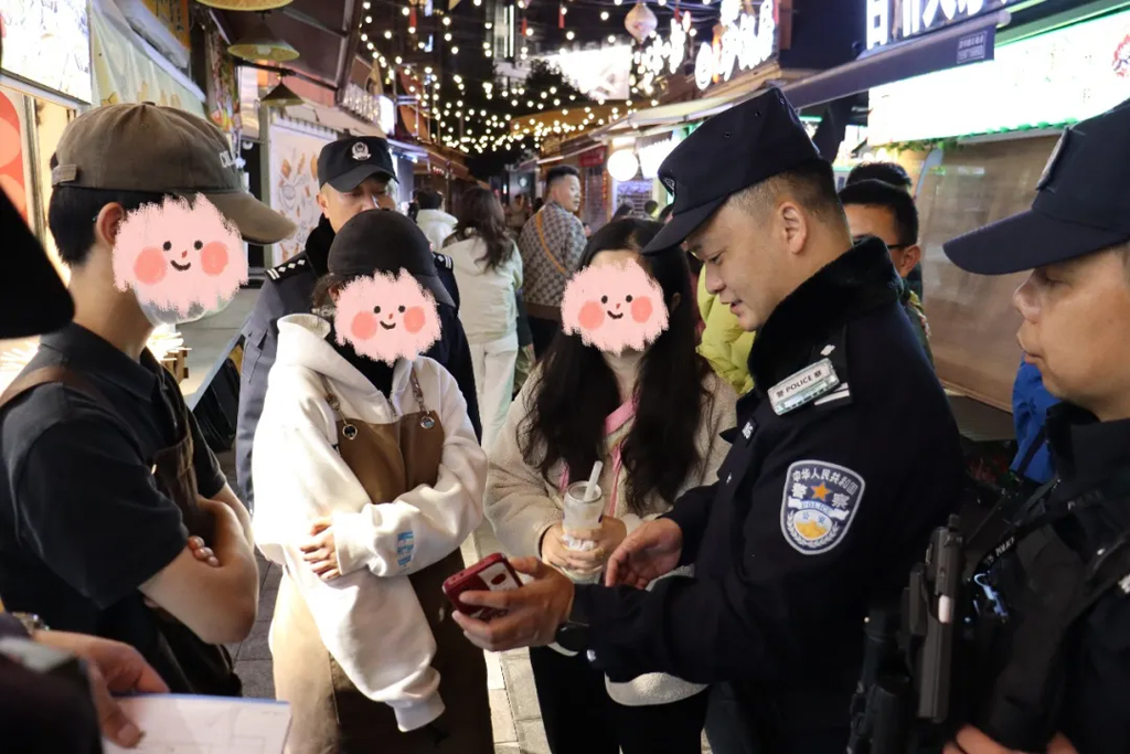 节日期间,民警辅警化身“导游”与“安全员”,日均为游客提供问路指引、物品寻回、应急救助等服务60余次,累计找回遗失手机、钱包、行李等物品20余件。在人流密集区域,同步开展反诈、防盗、消防安全宣传,用贴心提醒守护游客财产安全,让远道而来的游客感受到春城的温暖与平安。