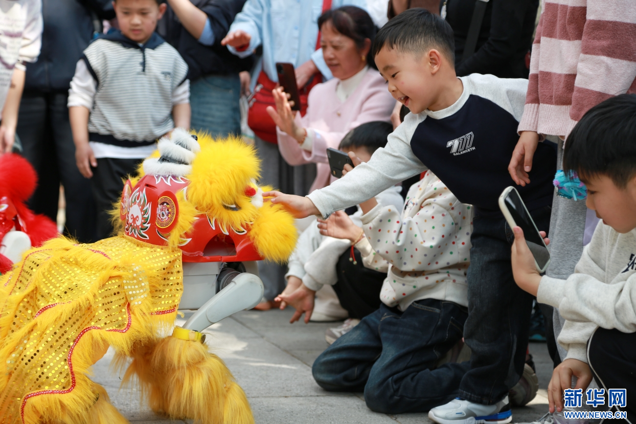云南建水古城的机器人和机器狗表演吸引不少市民和游客前来观看(2月18日摄)。新华网发(薛莹莹 摄)