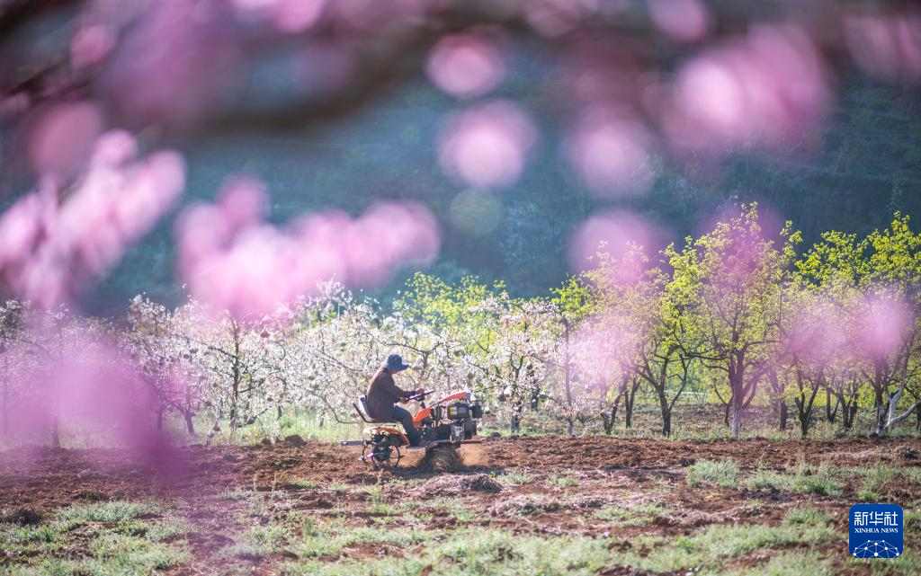 2月27日,在云南省文山壮族苗族自治州文山市东山乡,村民在樱桃种植基地进行管护。新华社发(熊平祥摄)