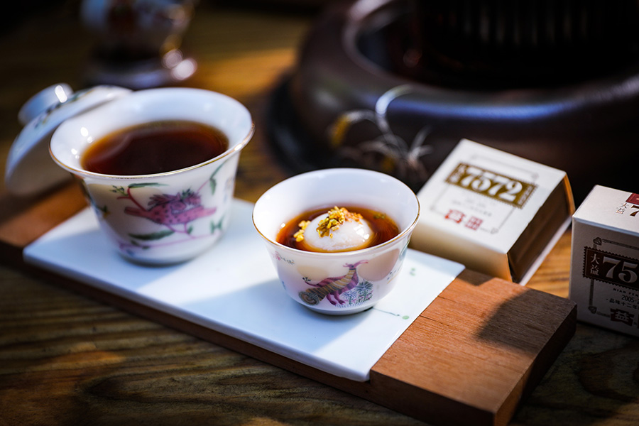 普洱茶汤圆(3月2日摄)。