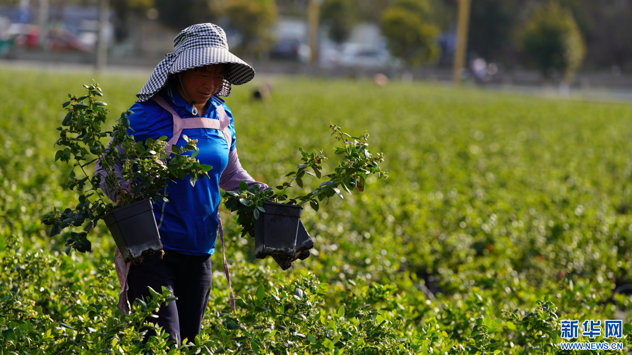 2月27日,在云南省昭通市彝良县一蓝莓种植基地,果农正抢抓农时进行作业。新华网发(彭洪 摄)