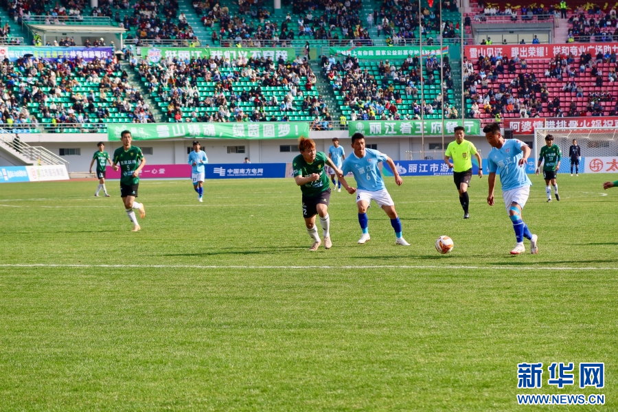 比赛上半场,丽江队55号球员杨国元踢进一球,场上比分1:0领先;下半场,丽江队6号球员高福荣再入一球,锁定胜局。最终,丽江队以2∶0战胜西双版纳队,拿下关键胜利。