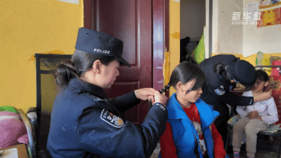 在留守儿童家中,女警们化身“临时妈妈”,为孩子梳辫子、辅导作业、普及安全知识,送上学习用品与暖心陪伴,用温情呵护孩子成长。