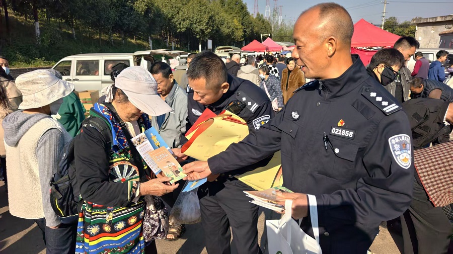 外勤二大队到集市宣传交通安全(资料图)。