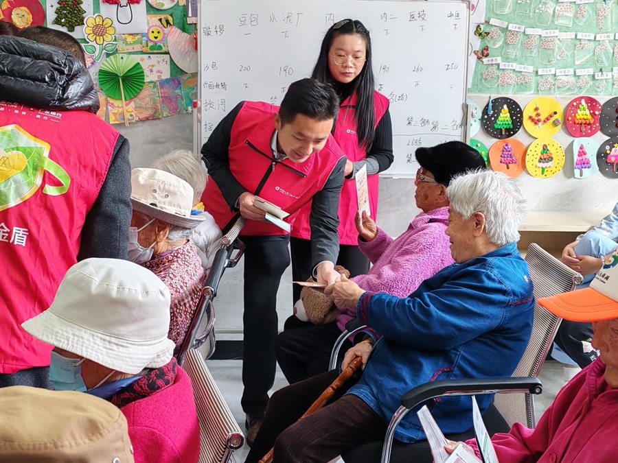 中国人寿财险昆明市中心支公司开展适老化金融消保宣传(3月11日摄)。
