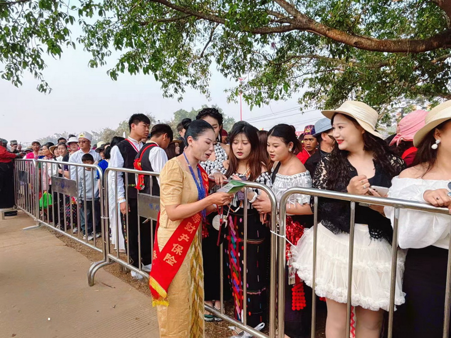 中国人寿财险陇川县支公司为观众普及金融消保知识(3月3日摄)。