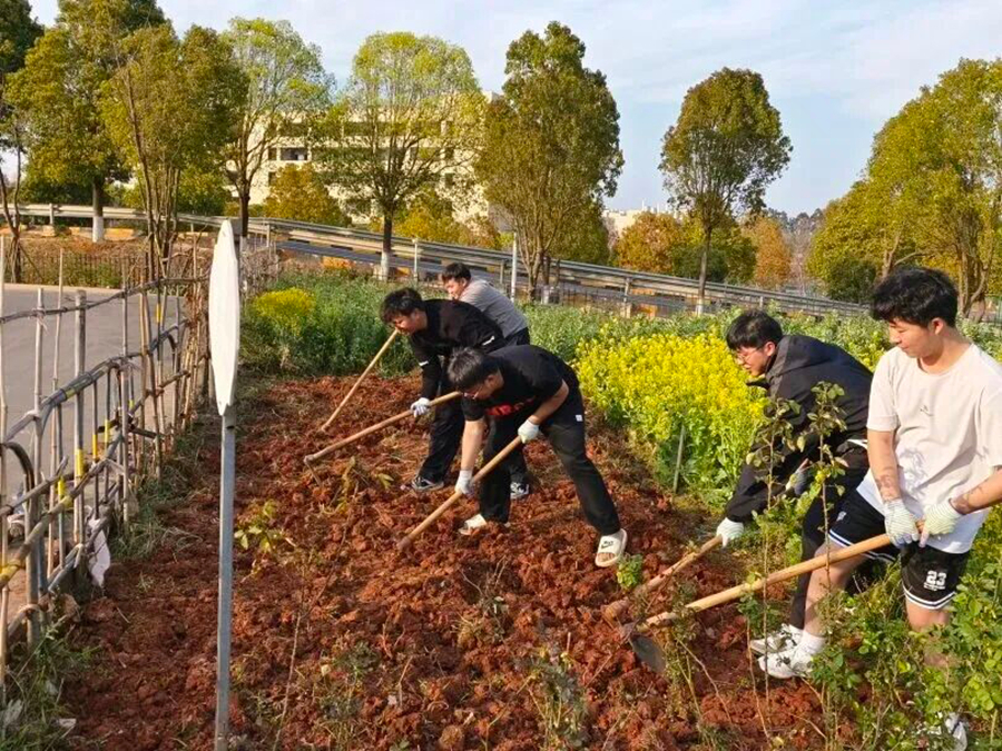 海源学院学生开展植树节主题活动(2025年3月12日摄)。沙晏竹 摄