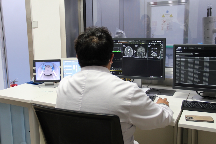 工作人员正在操作3.0T核磁共振成像系统(3月18日摄)。