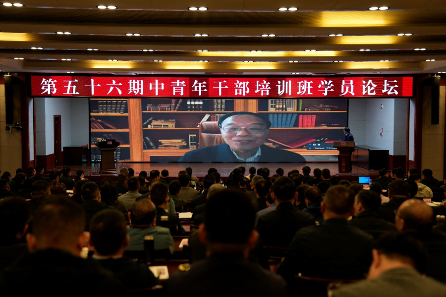 第五十六期中青年干部培训班学员论坛现场(3月19日摄)。