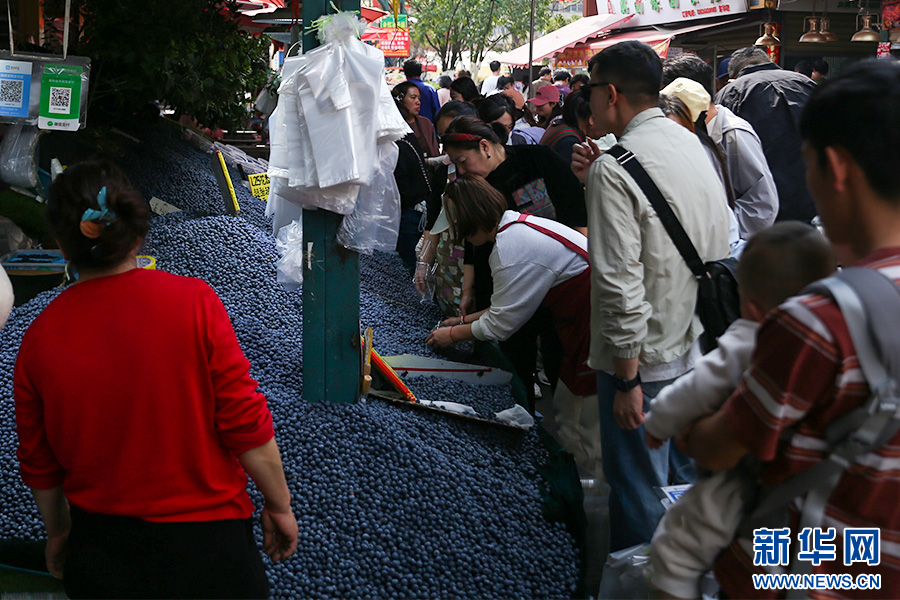 连日来,云南昆明东华新迎农贸市场的水果摊前热闹非凡。冬季蓝莓上市后,周云涛等商户将蓝莓摆成“蓝莓小山”,在社交媒体上热度飙升,吸引了众多市民和游客前来选购。