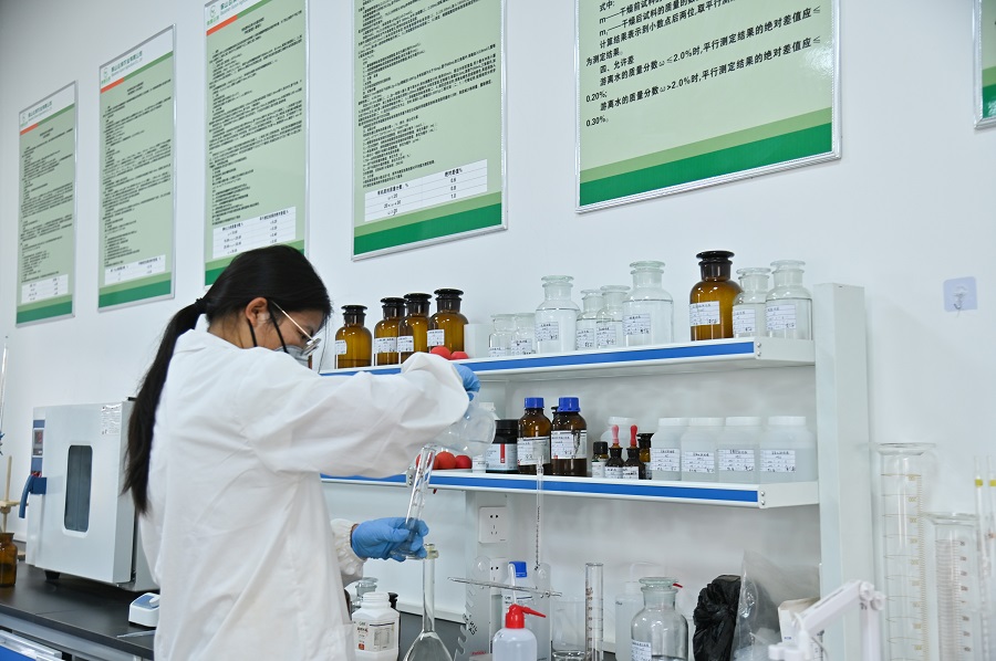 检验人员正在进行有机肥样本检测(3月13日摄)。