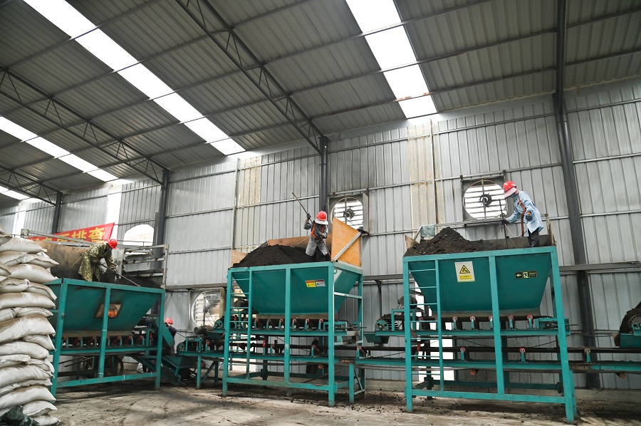 有机肥作业现场(3月13日摄)。
