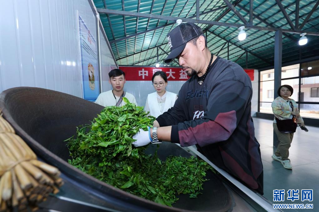 嘉宾体验制茶工艺(3月28日摄)。新华网发