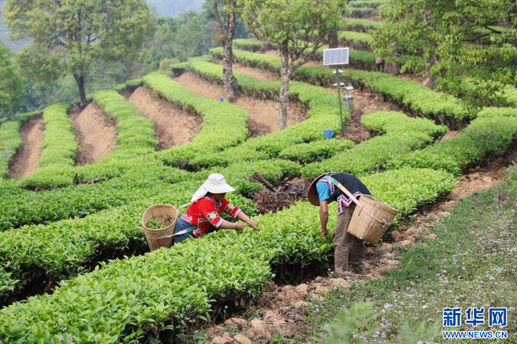 茶农采摘春茶(3月28日摄)。新华网发