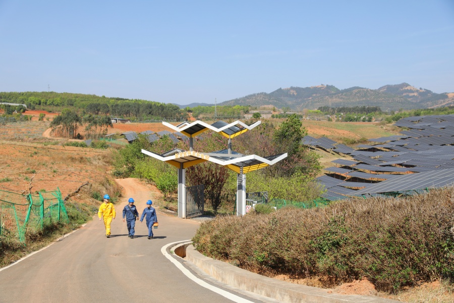 近日,南方电网云南昆明宜良供电局(以下简称“宜良供电局”)工作人员来到华润宜良新发“药光互补”光伏发电项目现场,仔细检查并网设备,并向项目负责人详细了解项目运行状况和实际需求。