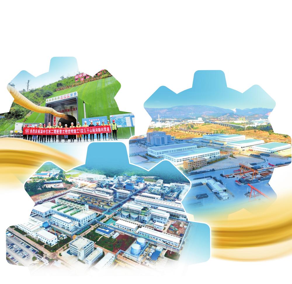 滇中引水二期配套工程昆明施工1段九子山隧洞。安宁市水务局供图 昆明国际陆港安宁北港。安宁北港供图 云铜锡业厂区。安宁高新区供图