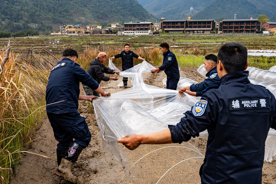 民辅警助农春耕(3月26日摄)。