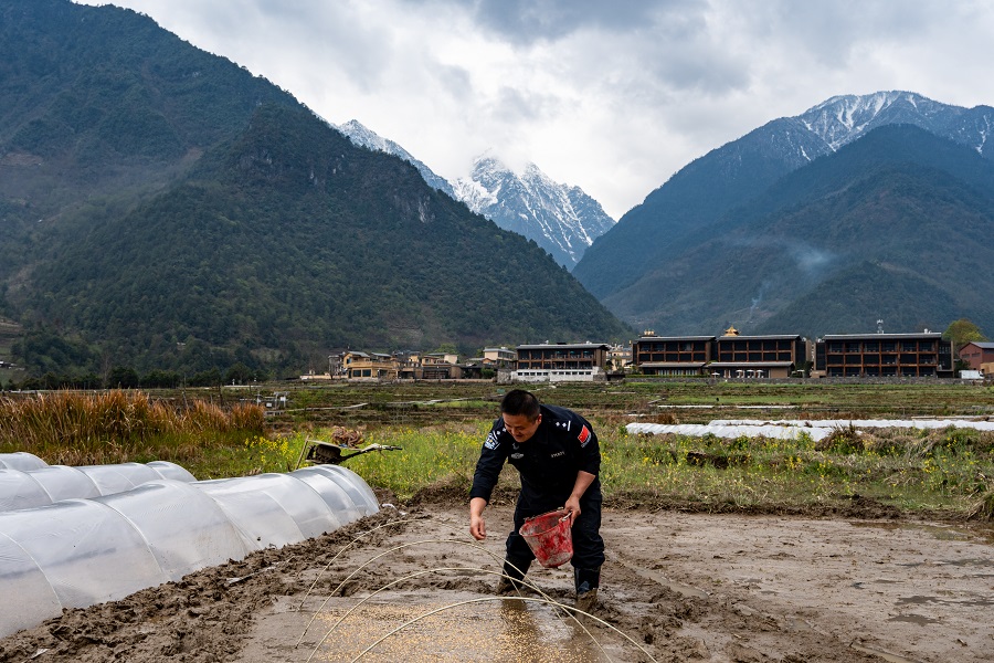 时下,正值春耕关键期,在云南省怒江傈僳族自治州贡山独龙族怒族自治县丙中洛镇甲生村东风小组,一群身着藏蓝警服的“临时农民”正穿梭于田间地头,成为春日里一道独特的风景线。面对部分农户劳动力短缺的难题,丙中洛边境派出所主动靠前服务,组织民辅警成立“助农小分队”,将“我为群众办实事”落到实处,用实际行动助力春耕生产。