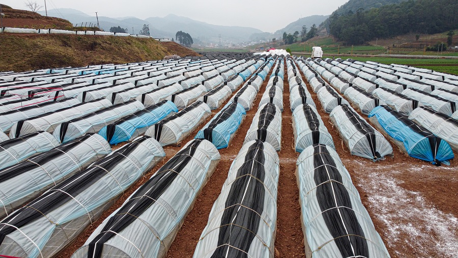 航拍施甸县太平村育苗点(3月13日摄)。