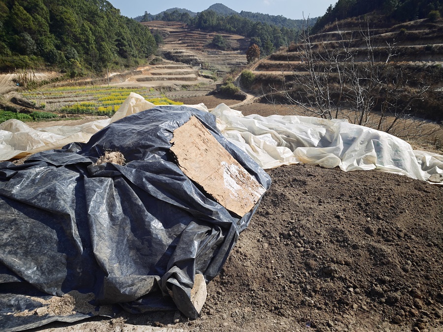 农家肥堆捂翻晒(3月4日摄)。刘霞 摄