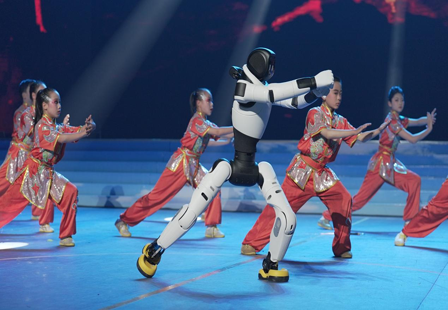 云师大附小呈贡校区少年们与智能机器人默契联动、同台表演(4月2日摄)。云师大附小呈贡校区 供图