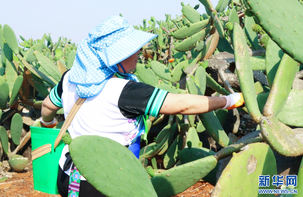 2026年3月26日,云南省文山壮族苗族自治州文山市庄子田村村民正在采摘仙人掌。新华网发(文山市融媒体中心供图)