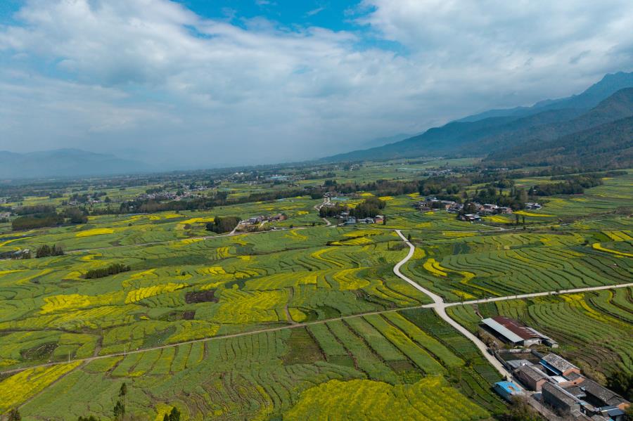 航拍界头镇沙坝地村(3月20日摄)。