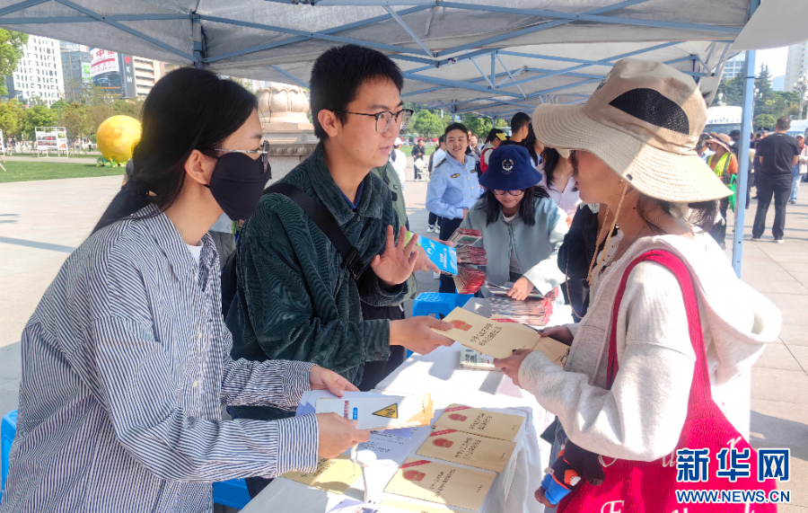 工作人员向市民发放国家安全教育宣传资料(4月15日摄)