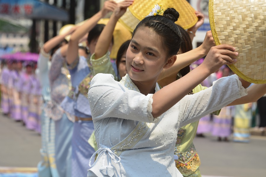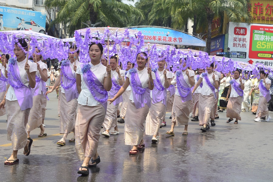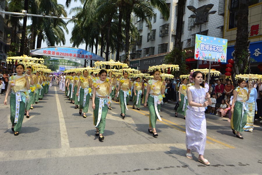 4月15日,云南省普洱市景谷傣族彝族自治县以“千景之谷·花朝水悦”为主题的采花泼水节万人赶摆游演活动,让县城沉浸在一片欢乐的海洋之中。活动通过13个游演方阵,集中展现了景谷多元民族文化交融的独特魅力。(完)