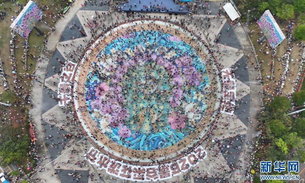 航拍景谷采花泼水节万人泼水狂欢现场(4月15日 摄)。新华网发(曹明星 摄)