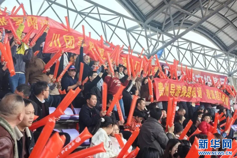 三省导游在元宝山城市体育公园内观摩滇超比赛(3月7日摄)。新华网发(昭通市委宣传部 供图)