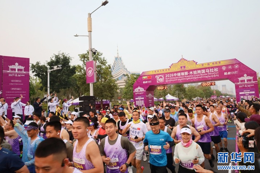2026中缅瑞丽-木姐跨国马拉松鸣枪起跑(3月1日摄)。新华网发(杨雪梅 摄)
