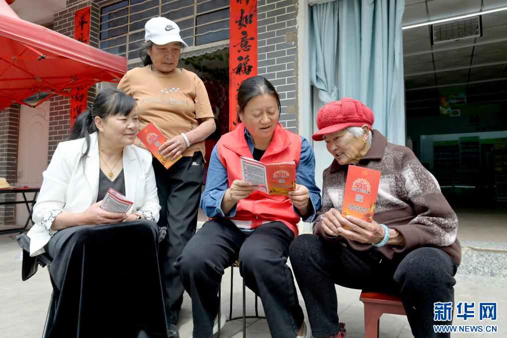 4月14日,一名志愿者(右二)在南涧县拥翠乡给当地群众讲解国家安全知识。