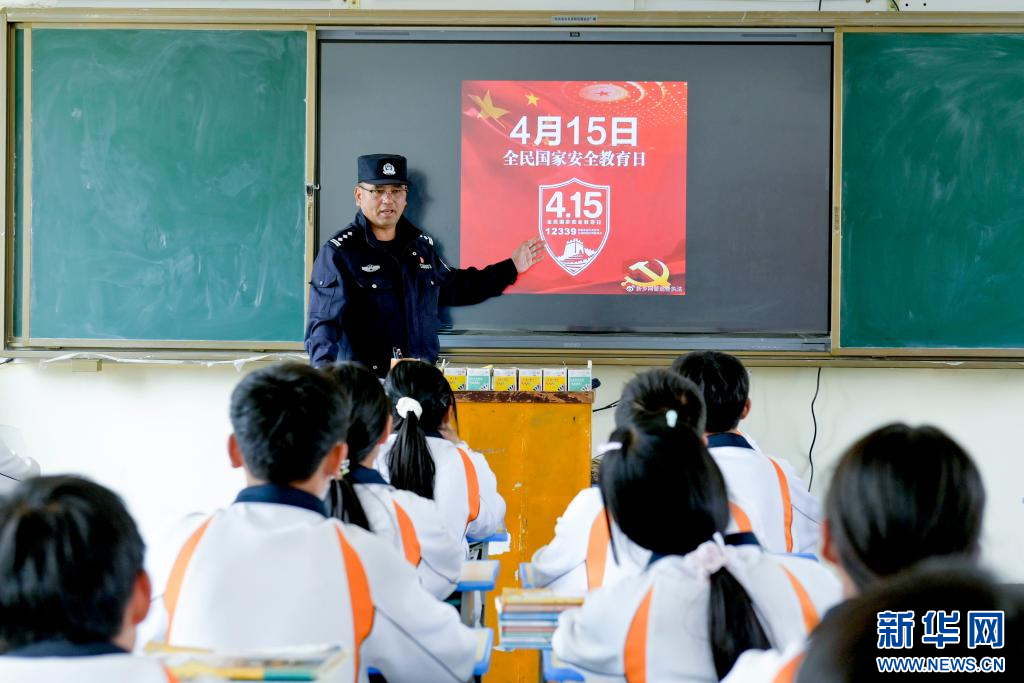 4月14日,一名民警在南涧县拥翠乡拥翠中学给学生讲解国家安全知识。