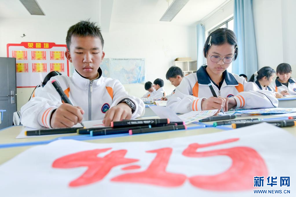 4月14日,学生在南涧县拥翠乡拥翠中学创作国家安全教育主题绘画。