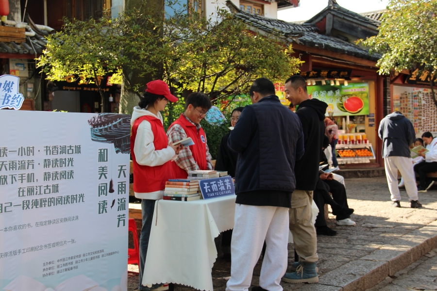 与此同时,活动当天,从丽江古城玉河广场至木府的沿线街巷,丽江市精心串联设置了7个特色活动点位,涵盖“天雨流芳书市”、亲子阅读主题分享会、动态阅读展示点、童趣书市、纳西文化体验点等多元场景。活动以图书展览推荐、好书互换市集、东巴文化现场展示、公益阅读指导等丰富的形式,吸引市民游客主动参与、积极互动,让阅读走出场馆、融入古城街巷、贴近大众生活,营造“处处可读书、时时能阅读、人人乐参与”的全民阅读氛围。