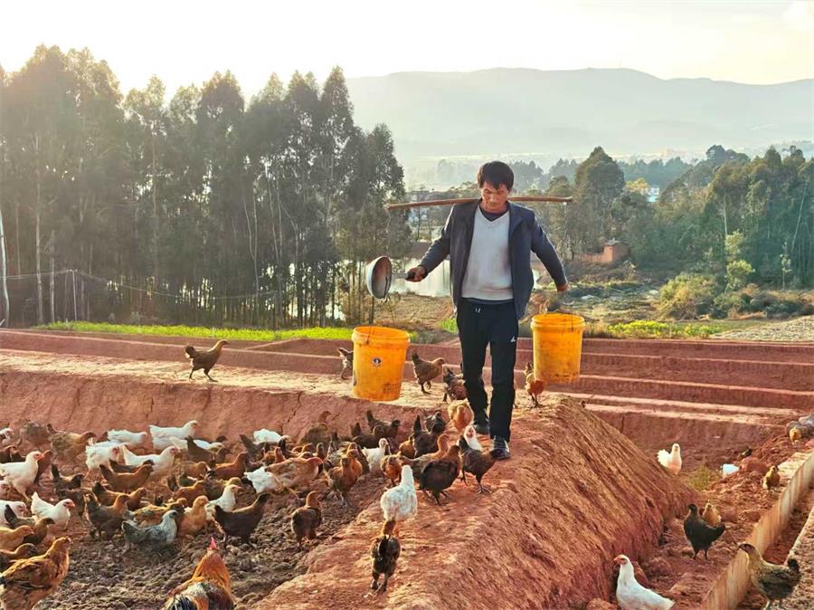 2021年,代光双在自家承包的120亩山地上,开启了养鸡创业之路,“林—鸡—菜”微型生态循环系统悄然成型。2022年至2023年,他家烟叶种植面积从18亩增加至70余亩,直到2025年已形成“烤烟—油菜—玉米”的多元发展模式。