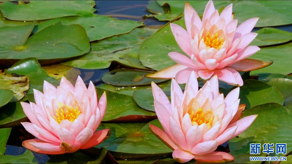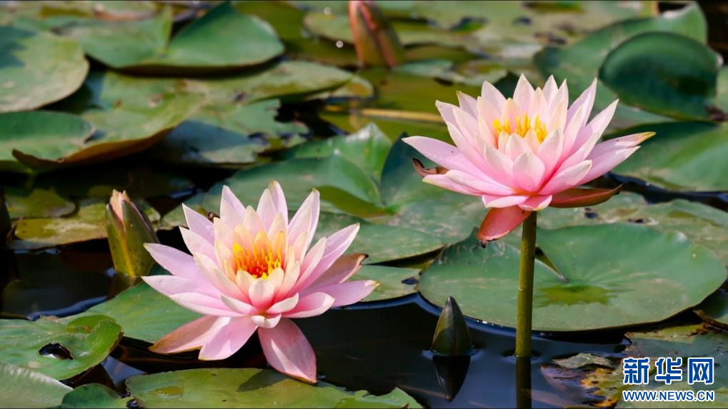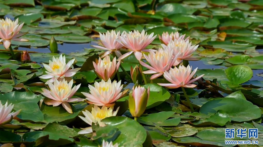 云南省开远市凤凰湿地,睡莲惊艳绽放(视频截图)。