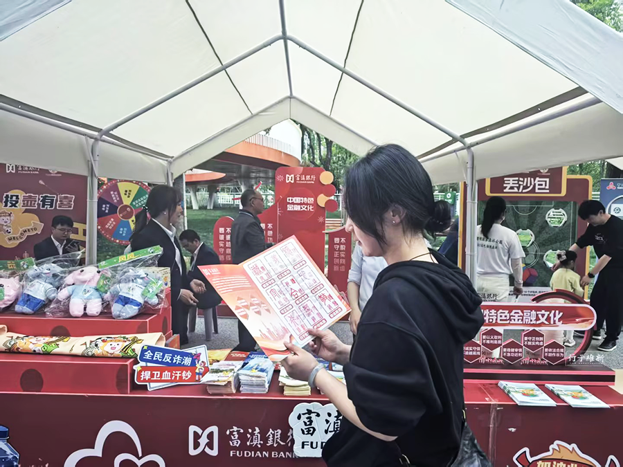 富滇银行紧扣“滇超联赛”这一云南本土足球赛事,将中国特色金融文化宣传植入赛场内外,打造沉浸式、互动式的教育场景。在西双版纳、丽江、红河、昭通赛事活动现场,富滇银行设置的中国特色金融文化宣传展区成为球迷“打卡”热门点位。互动体验区、球迷“打卡”区功能分明,“精准沙包射门赢好礼”“投壶解锁金融知识”“滇超知识大转盘”等游戏巧妙融入反诈常识、理财理念和中国特色金融文化,吸引观众参与。球迷们在欢呼助威之余,通过趣味互动轻松掌握金融知识,提升了风险防范意识,也潜移默化地学习和了解了中国特色金融文化。